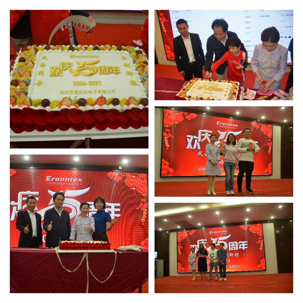 在一片熱鬧的歌舞中,逸云天崔總切開15周年慶祝蛋糕,和員工一起許下美好的心愿,將整場年會推向了最高潮!年會表演期間還穿插著五次大抽獎,為員工送去了新年大福利。沒有抽到的小伙伴也不要灰心,還有人人有份的陽光普照獎哦!