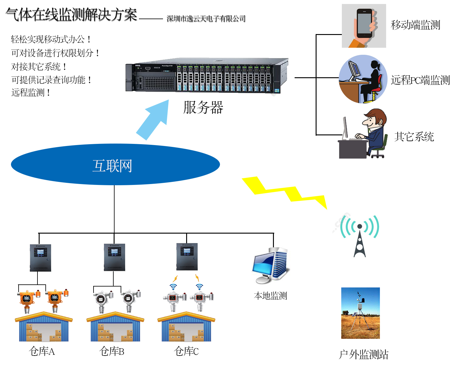 在線式毒氣監測儀器等監測儀器設備,通過網絡化大面積組合科學布點,構建主要污染源全覆蓋的監測網絡,對有廠界及敏感點和區域環境空氣中的毒氣濃度進行實時監測;現場監測數據有效實時的同步到“智慧云”平臺;數據管理中心對傳輸數據進行有效科學化分類管理,形成有效的數據報告;方便歷史數據查看,同時為環保等部分提供有效的環境數依據。
